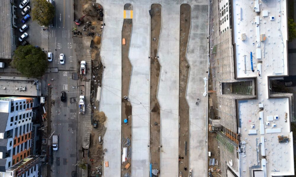 Construction is progressing on the new Santa Cruz Metro Center, part of the larger Pacific Station North Redevelopment complex. A recent aerial view reveals that bus...