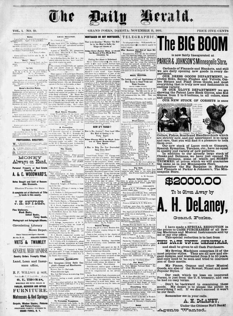 On November 11, 1881, the *Grand Forks Herald* reported a remarkable surge in land sales at the Grand Forks land office, dramatically outpacing the activity in Fargo. The overwhelming demand left staff struggling to meet the needs of eager buyers, marking a significant moment in the region’s economic development.