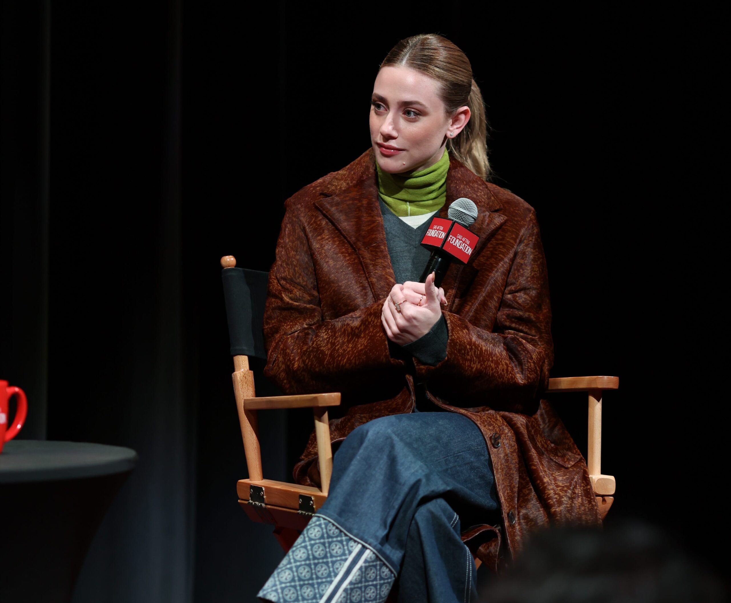 Lili Reinhart made a striking fashion statement during a recent appearance for the SAG-AFTRA Foundation, showcasing a vibrant lime-green ensemble that drew inspiration from the historical figure, Marie Antoinette. The actress, known for her roles in various television series and films, wore a look from Tory Burch’s Resort 2026 collection, blending business-casual attire with bold color accents.