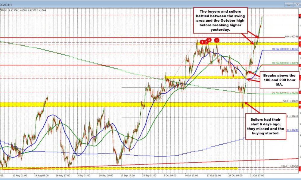 UPDATE: The USDCAD currency pair is experiencing a significant surge today, marking its sixth consecutive day of gains. Buyers are intensifying their momentum, pushing the exchange...