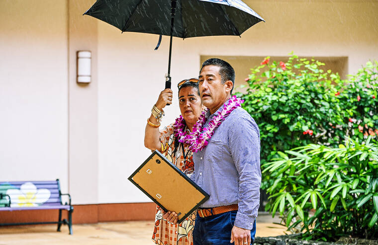 Kauai officials gathered on November 13, 2023, to highlight the pressing issues of hunger and homelessness during a proclamation event at the Moikeha Building. Mayor Derek S.K. Kawakami addressed advocates and representatives from local agencies dedicated to combating these challenges. As rain fell, Councilwoman Fern Holland offered her umbrella to shield a worker, allowing the mayor to continue his remarks without interruption.