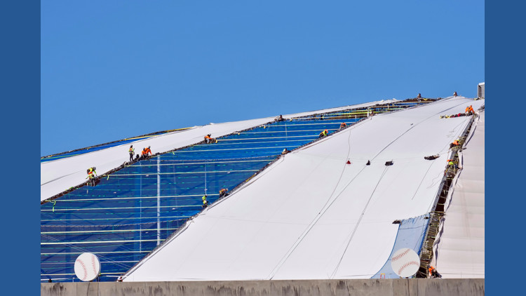 Tropicana Field, known for its distinctive design featuring the world’s largest cable-supported domed roof, suffered severe damage due to Hurricane Milton. The stadium, which opened in 1990, relied on 180 miles of cables connected by struts to support its translucent, Teflon-coated fiberglass panels.
